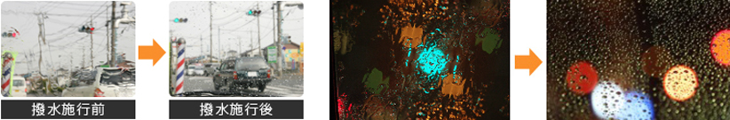ガラスコーティング(撥水加工)を施すことで水滴が飛散し、視界をスッキリ確保します。また、霜、凍結の防止効果もあります。